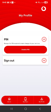 PIN Management Select the "My Profile" menu item. Then tap the PIN menu item > "Enable PIN" |